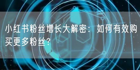 通过本文的介绍,希望大家对如何在小红书上有效购买更多粉丝有了更深入的了解。在购买粉丝的同时,也要注重内容质量和与粉丝的互动,才能真正提升个人或品牌在小红书上的影响力。